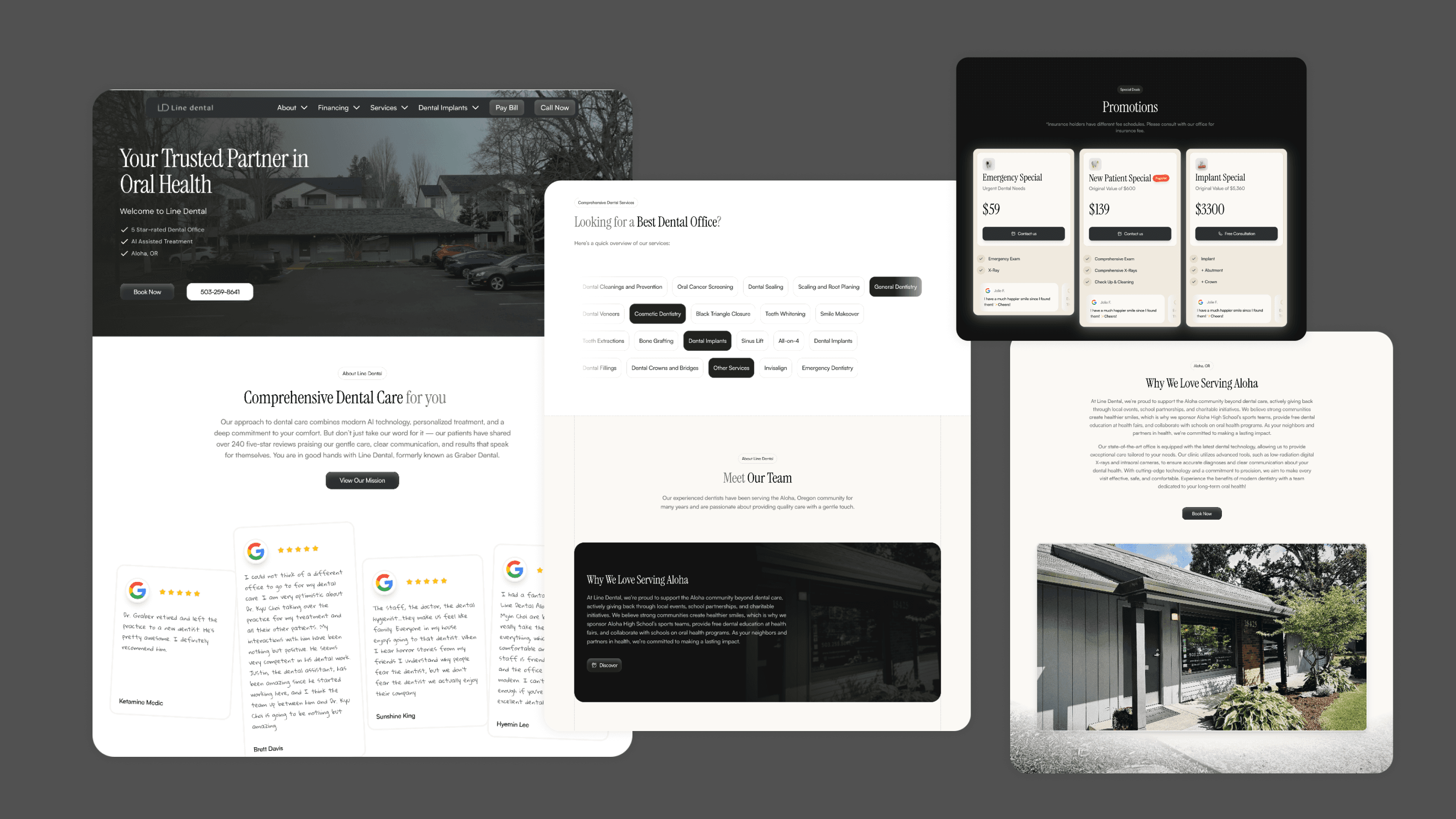 My work includes creating branding solutions for dental practices, such as logo design, web design, and social media graphics.